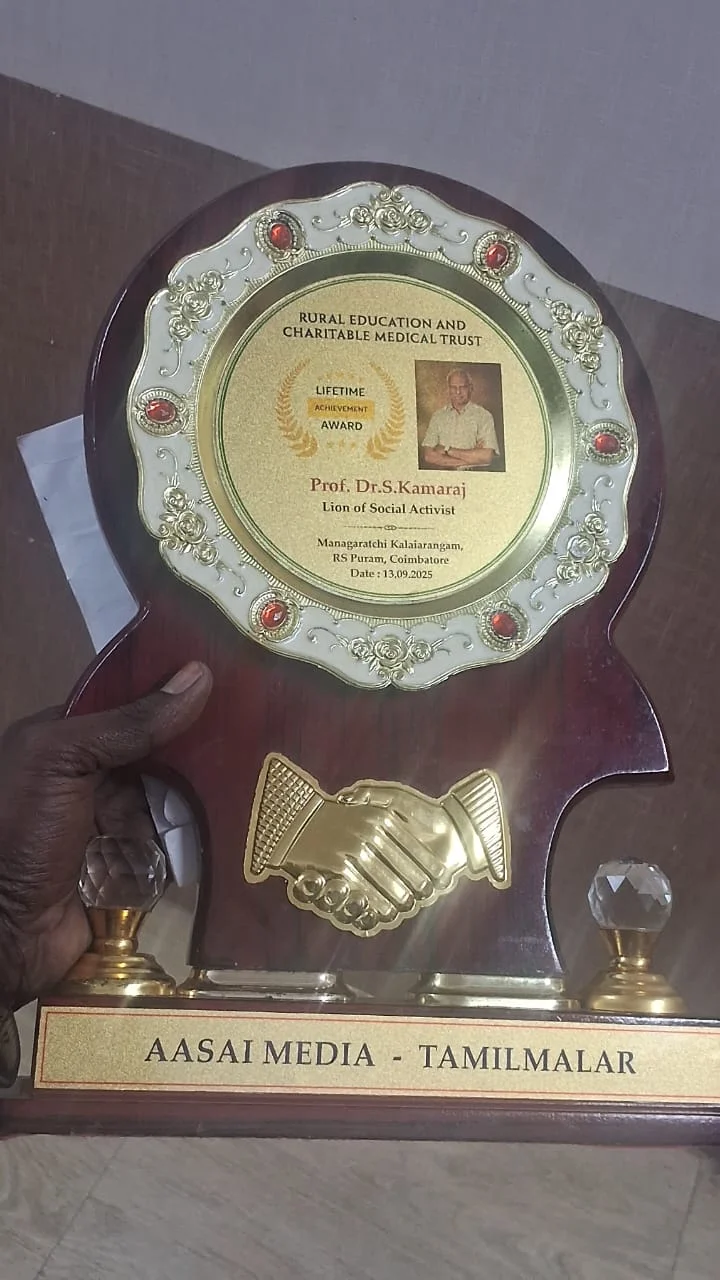 Lifetime Achievement Award – Prof. Dr. S. Kamaraj by Rural Education and Charitable Medical Trust
