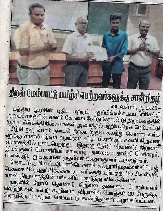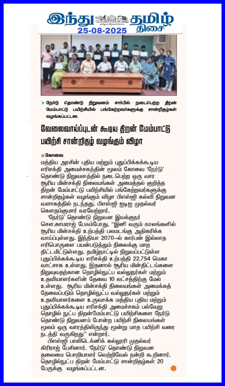 திறன் மேம்பாட்டு பயிற்சி சான்றிதழ் வழங்கும் விழா
